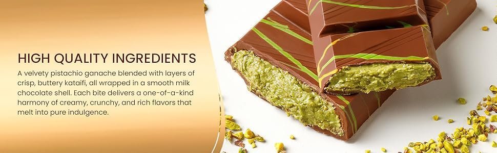 Lo que hace único al Chocolate de Dubái es su revolucionaria estructura interna. Olvídate de las texturas planas del chocolate convencional. Este es un festival para tu paladar:El Crujido Inconfundible : En su interior esconde Kataifi, una masa filo triturada típica de la repostería de Oriente Medio (como el Knafeh). Tostada a la perfección, ofrece un "crocante" que los fans describen como "ángeles cantando en tu boca"